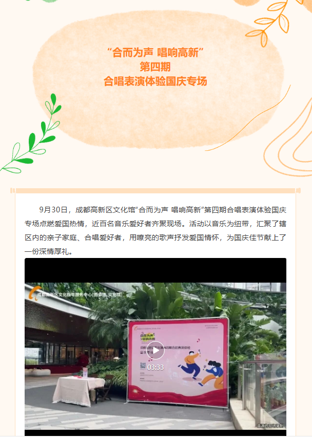 “合而为声 唱响高新”第四期合唱表演体验国庆专场点燃爱国热情