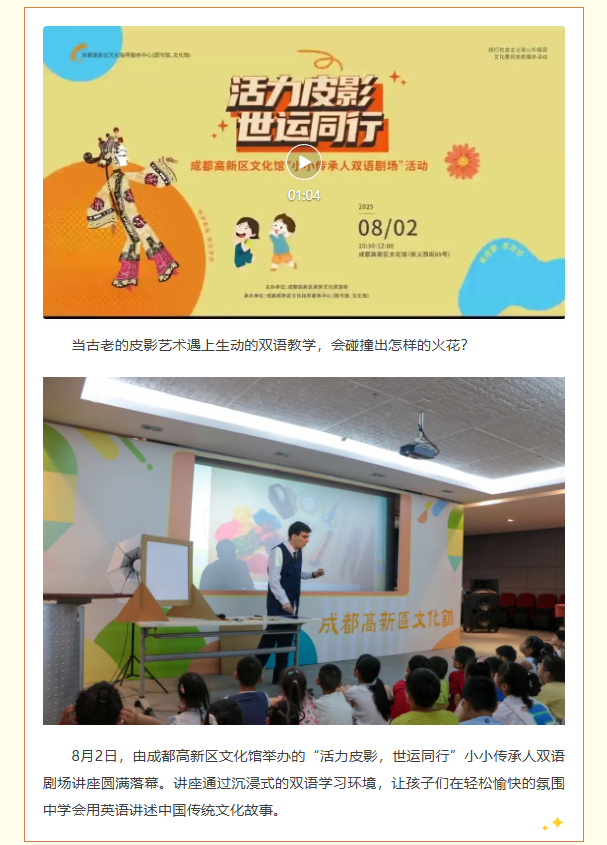 活动I “活力皮影,世运同行”成都高新区文化馆“小小传承人双语剧场”讲座圆满落幕