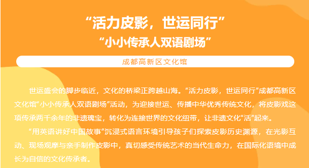 报名I “活力皮影,世运同行”成都高新区文化馆“小小传承人双语剧场”活动