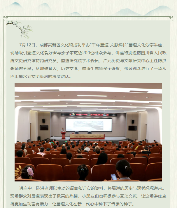活动I “千年蜀道 文脉绵长”成都高新区文化馆蜀道文化分享讲座,开启一场跨越千年的文明对话
