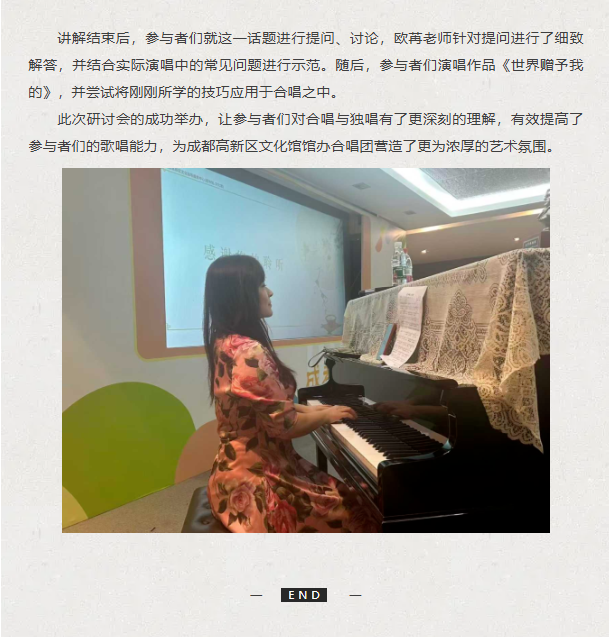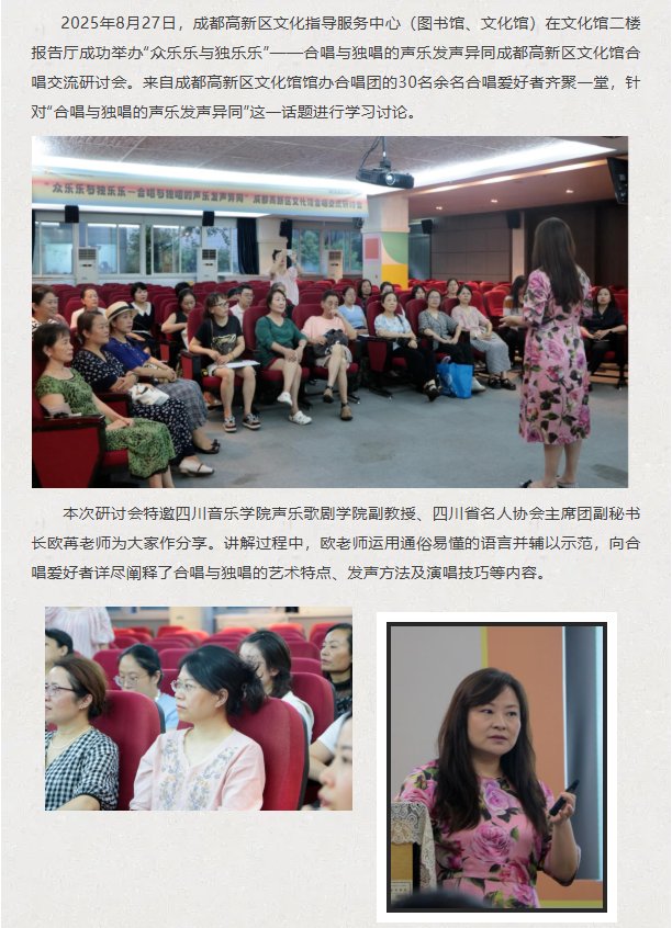 “众乐乐与独乐乐”——合唱与独唱的声乐发声异同成都高新区文化馆合唱交流研讨会圆满举行!