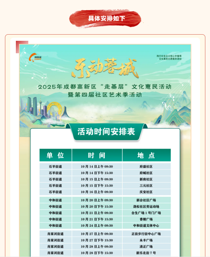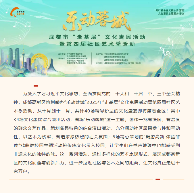 活动预告|“乐动蓉城”2025年成都高新区“走基层”文化惠民活动暨第四届社区艺术季活动即将启幕!