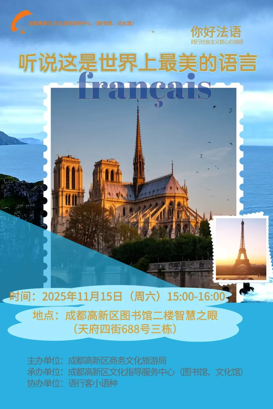 “你好法语”活动来袭!告别枯燥的语法和单词表,我们将通过趣味情景对话和互动游戏,带你轻松掌握地道实用的法语表达。无论你是零基础小白,还是对法国文化充满好奇,这里都将为你开启一扇通往法语世界的大门。快来加入我们,一起玩转法语,探索不一样的精彩文化!