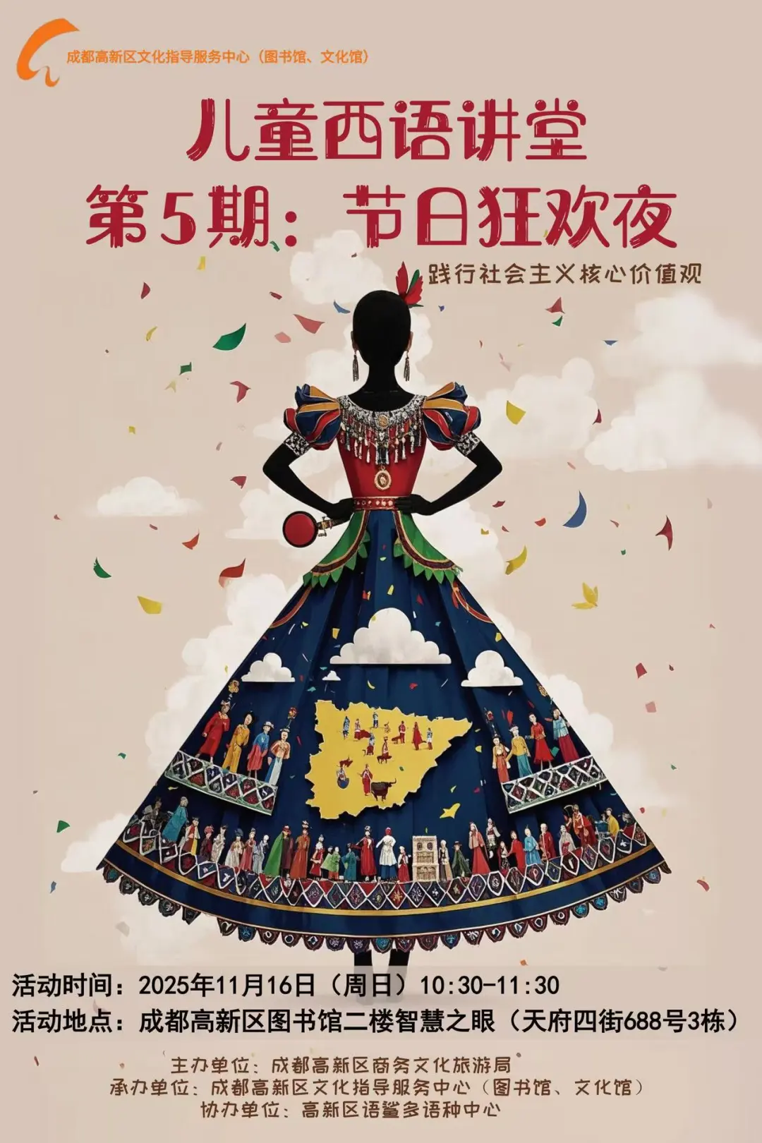在西班牙节日庆典歌曲的动听旋律中,“儿童西语讲堂”第5期开课啦!本期活动,我们将带领孩子们穿越到热情似火的西班牙,亲身感受世界著名节日的独特魅力!孩子们将在沉浸式的游戏与挑战中,轻松掌握“节日”、“音乐”、“舞蹈”等基础西语词汇,感受“板鸭国度”的热情与奔放!快来加入我们,在这场别开生面的节日派对中,一起呐喊、欢笑、舞蹈吧!