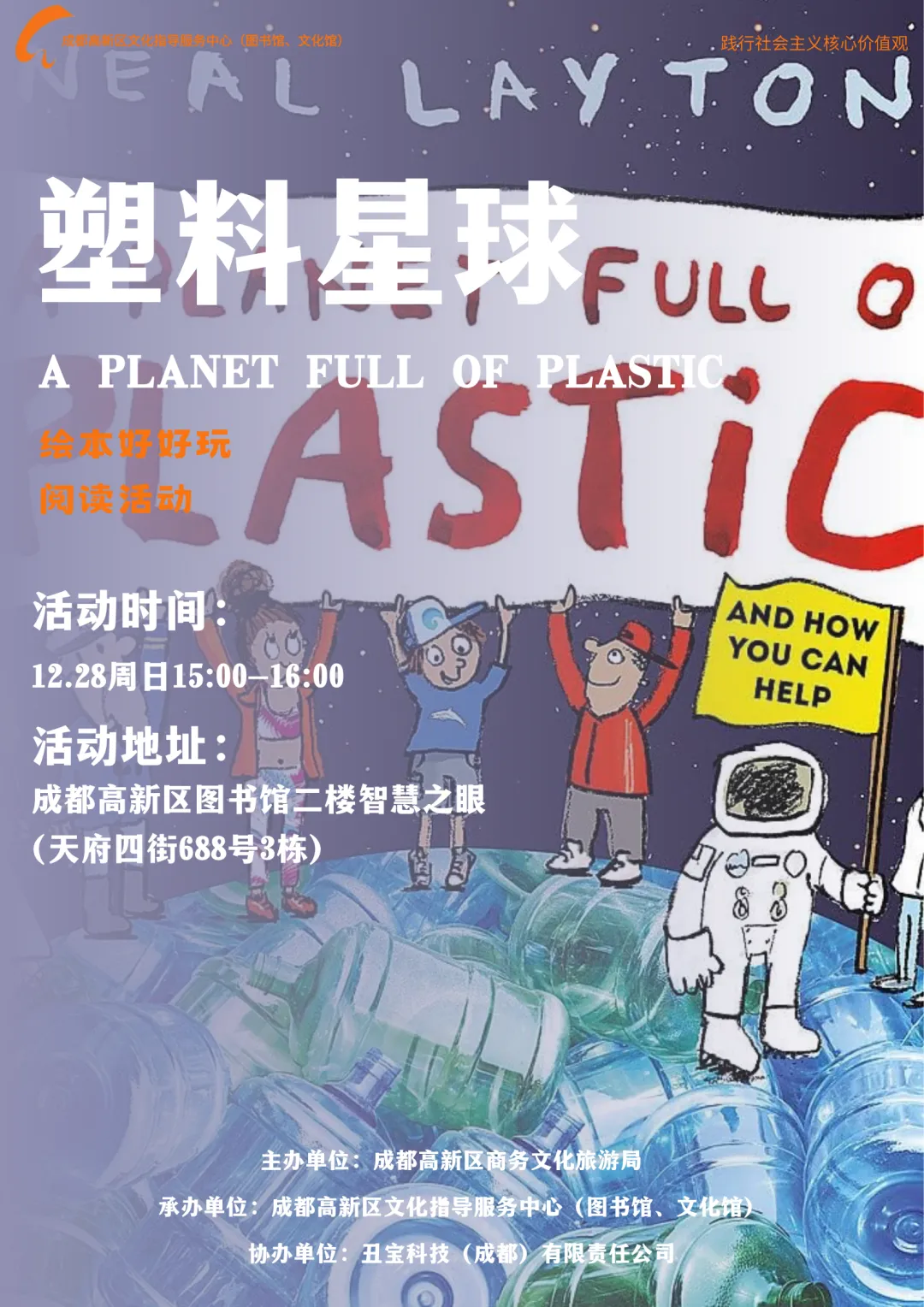 你知道塑料都有哪些存在的形式吗?你知道塑料是谁发明出来的吗?成都高新区图书馆《塑料星球》绘本活动将带领孩子们探索塑料的世界:从贝克兰发明塑料的历史,到生产流程、生态危害与环保方案。通过互动问答、创意实践,启蒙环保意识,在孩子心中播下守护地球的种子。欢迎小朋友们一起来发现、思考、行动,用阅读点亮绿色未来!