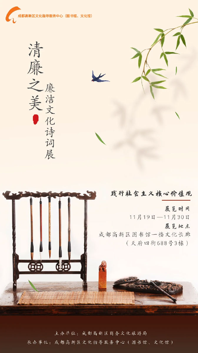 从屈原“伏清白以死直兮”的坚贞执着,到于谦“要留清白在人间”的凛然气节,这些承载着高尚品格的文化遗产跨越时空,至今仍与新时代价值观相互映照,历久弥新。成都高新区图书馆推出“清廉之美”廉洁文化诗词展,以历代诗词为载体,挖掘其中的廉洁意象,解析其蕴含的廉洁精神。在这个冬日,让我们共同品读经典,感悟廉洁力量。