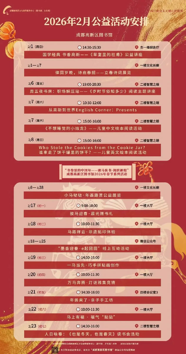 活动地点:成都高新区图书馆(天府四街688号3栋)负一楼报告厅