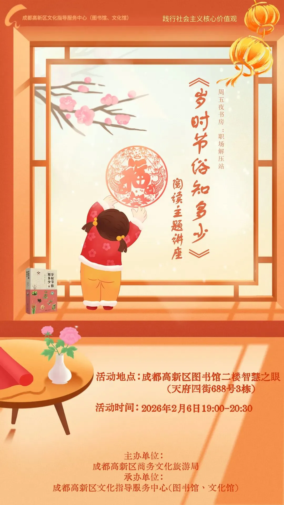 本周五晚,相约成都高新区图书馆,在书香与年味交织中,感受跨越时空的民俗魅力。