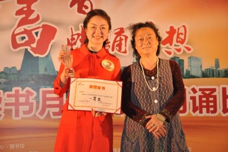 高新区“读书月”诗词朗诵比赛初赛于4月13日前由各协办单位完成,复赛和决赛分别于4月19日、26日在高新区文化指导服务中心图书馆举行。比赛吸引了50余支代表队的参与,经过初赛选拔,来自辖区内社区、大中小学校、软件园企业的37只代表队进入复赛,经过激烈角逐,15只优秀代表队脱颖而出,进入最后决赛。本次比赛参赛作品题材丰富、形式新颖、格调高雅,有歌颂祖国和家园的《高新礼赞》、《母亲我是你的钓鱼岛》、《芳草赞》;有颂扬亲情和母爱的《家人》、《妈妈给的书》、《干妈》;有畅诵梦想的《我的中国梦》、《筑梦高新》,有抒发读书心得的《月夜读书》、《节日诗韵》。最终来自天府新谷的李文懿以《高新礼赞》获得比赛第一名。